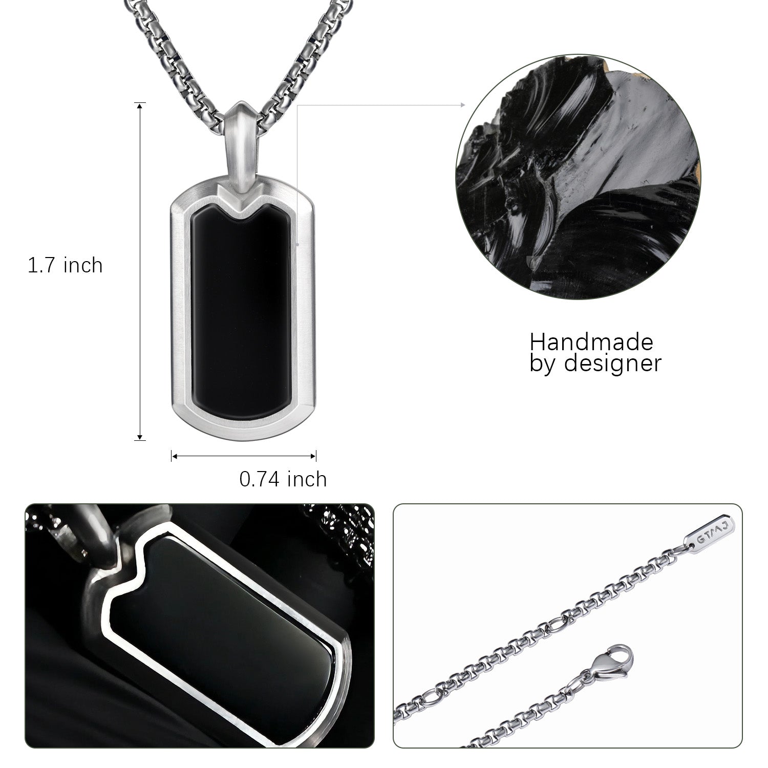 - Authentic black onyx crystal pendant paired with 316L stainless steel chain.