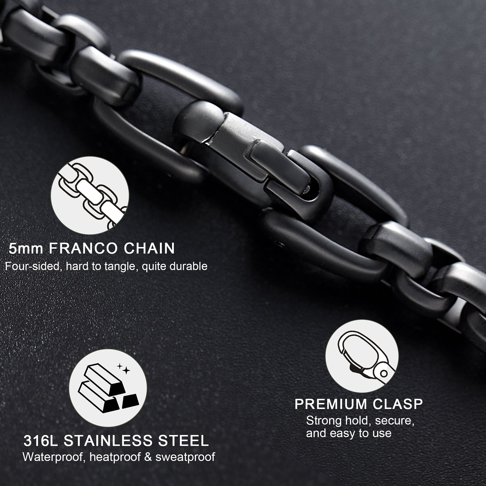 Matte Finish Black IP Stainless Steel Bold Box Chain Bracelet