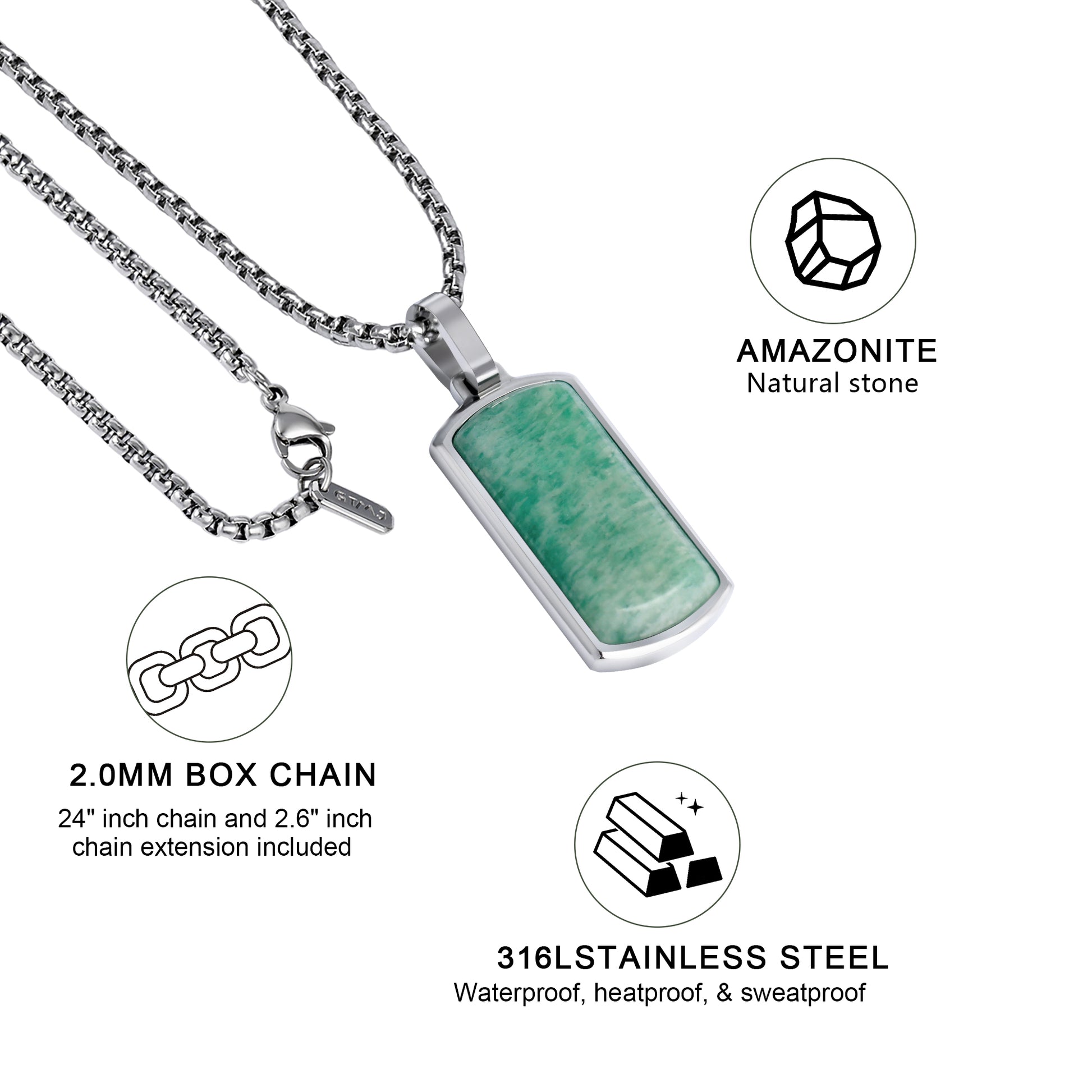 - 【Best Gifts】As a unisex piece,Packaged in a luxury gift box with anti-tarnish pouches and 1 premium polishing cloths, this Amazonite Pendant Necklace serves as meaningful gifts for your loved ones,anniversaries,Whether you want to surprise a special man in your life or show appreciation to a woman close to your heart, this necklace is a thoughtful present.