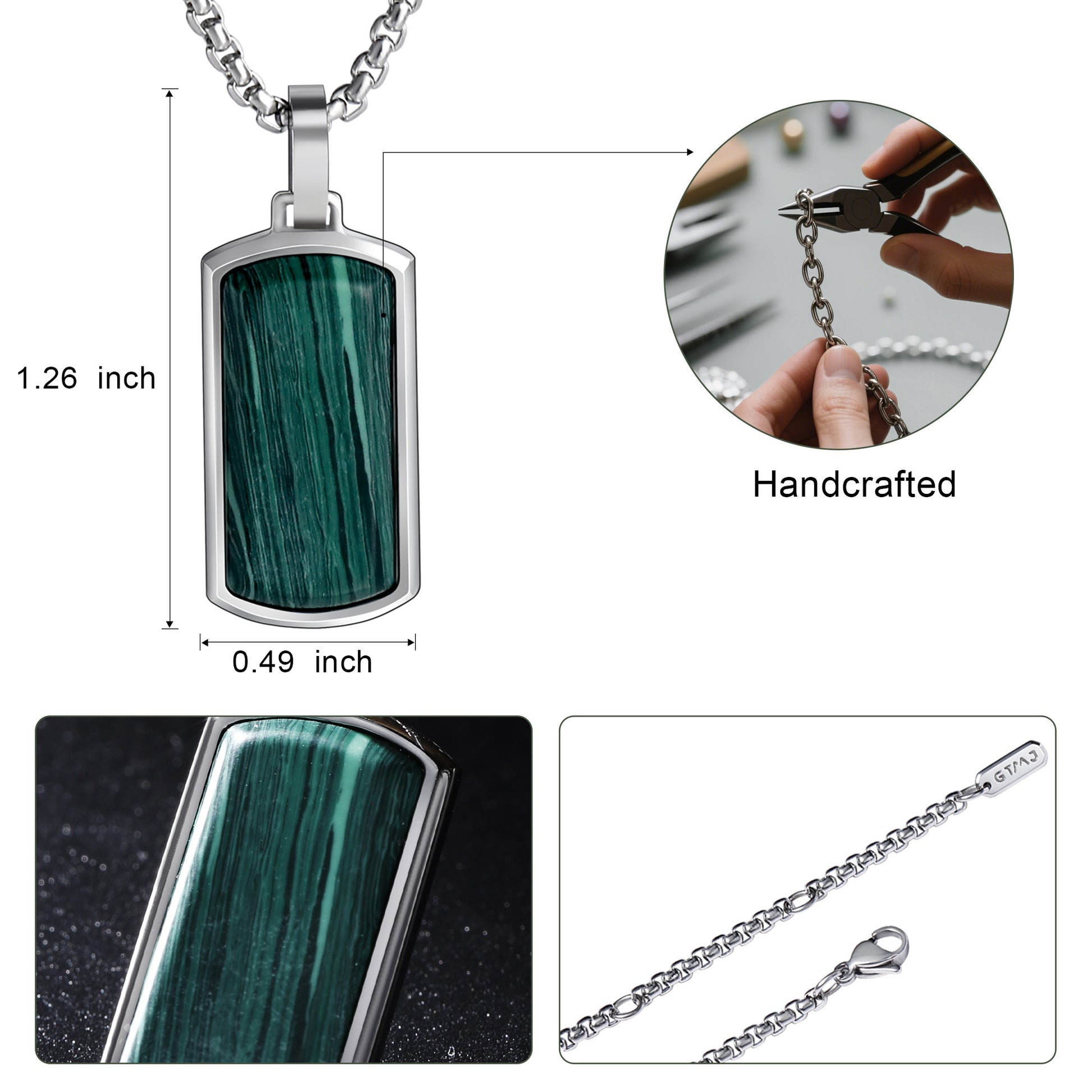 - 【Best Gifts】As a unisex piece,Packaged in a luxury gift box with anti-tarnish pouches and 1 premium polishing cloths, this Malachite Pendant Necklace serves as meaningful gifts for your loved ones,anniversaries,Whether you want to surprise a special man in your life or show appreciation to a woman close to your heart, this necklace is a thoughtful present.